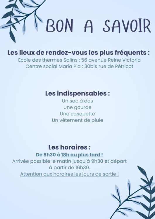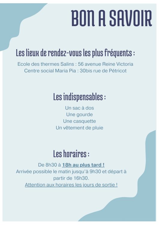 Activités ludiques et culturelles, loisirs créatifs, sport, visites et découvertes, sont au programmes pour faire découvrir et apprendre en s’amusant.
